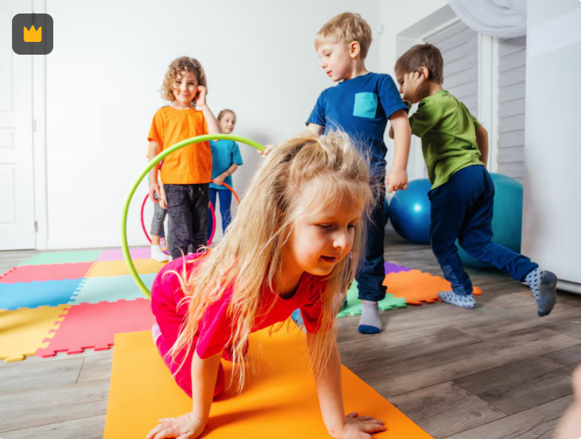 Corpo em movimento, mente feliz. Pular, rolar, equilibrar! Nossas aulas de movimento ajudam a criança a conhecer sua força e seu espaço. É essencial para que ela ganhe confiança física para correr e brincar com segurança.